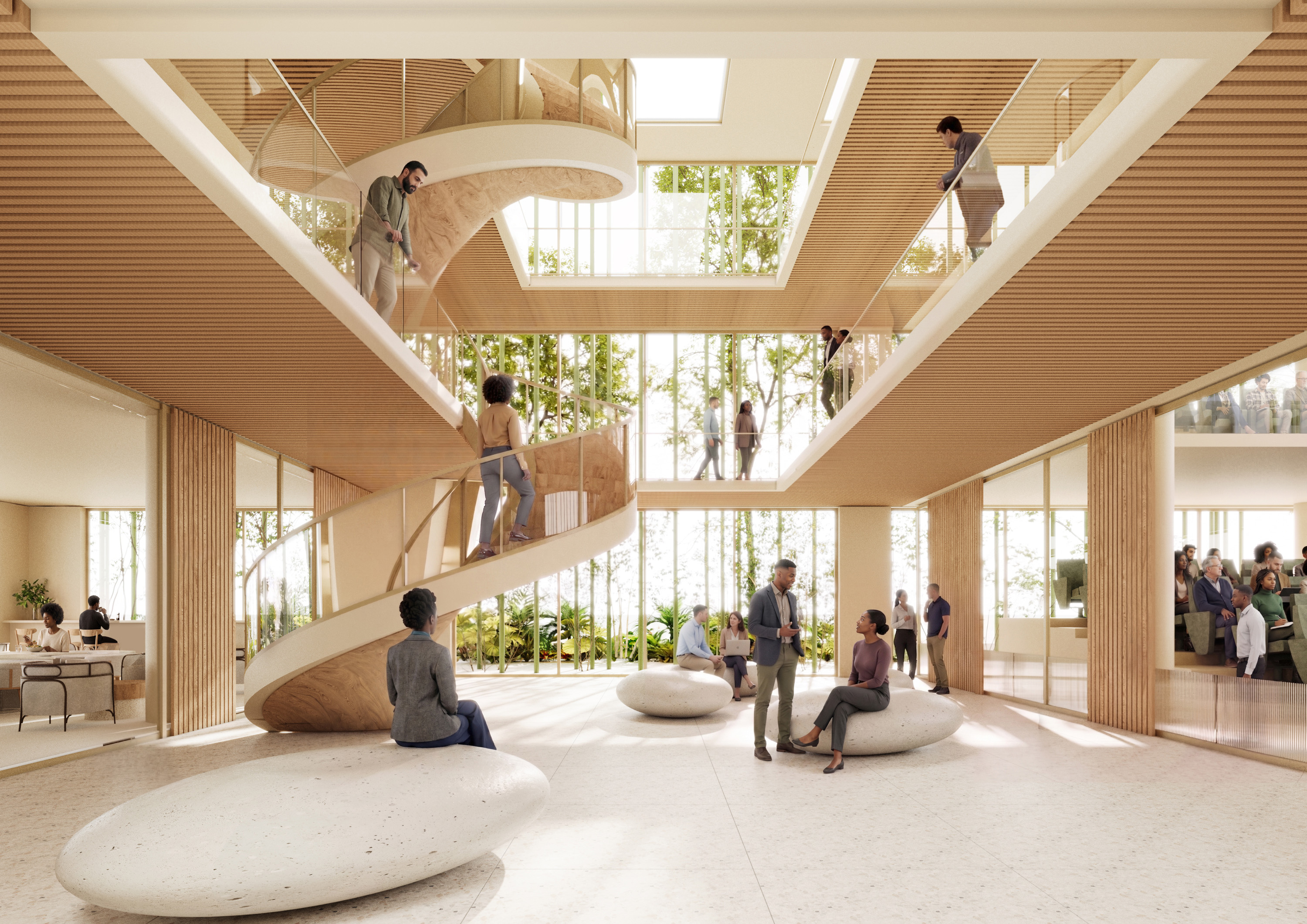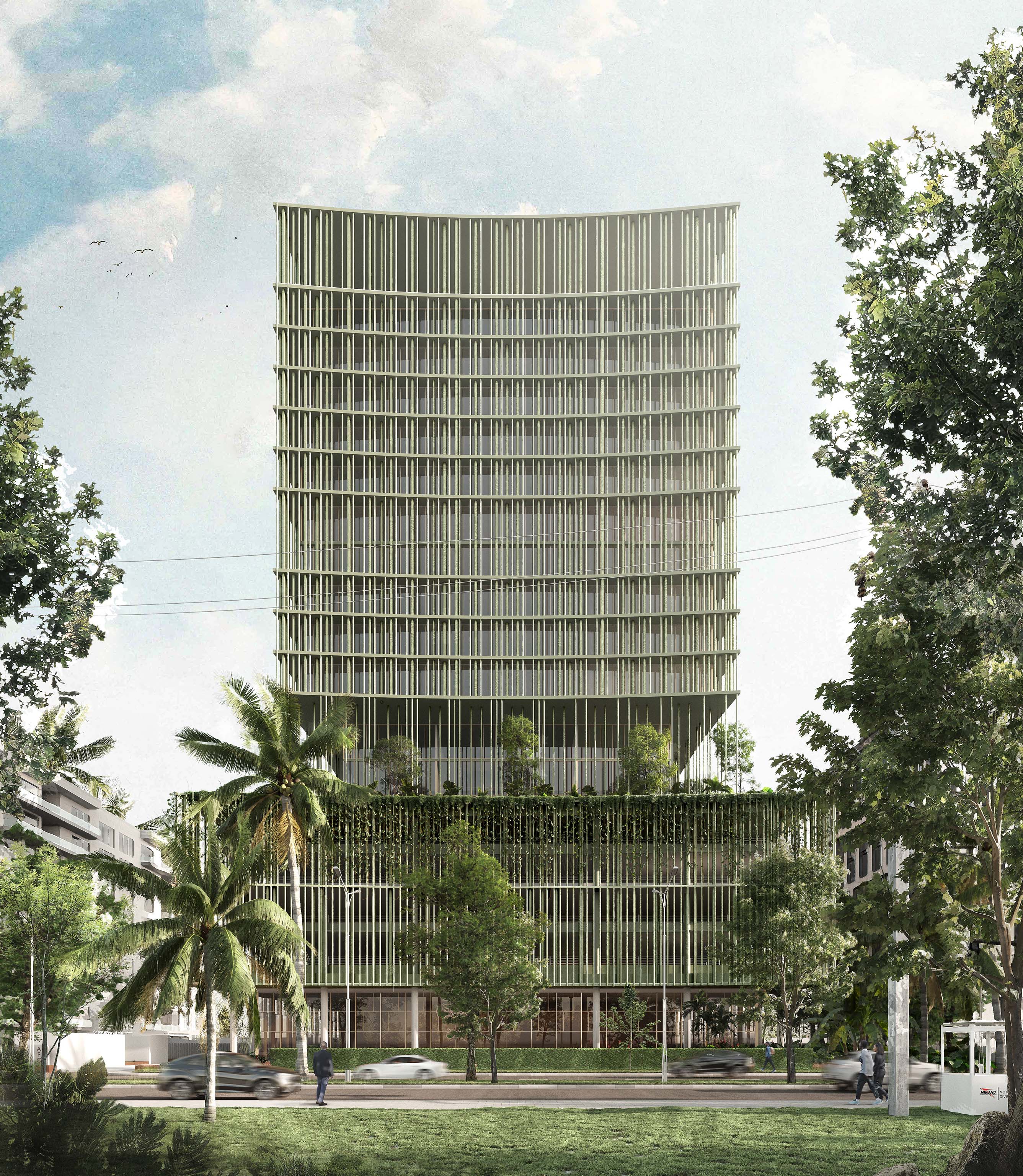 The Tower is envisioned as an iconic yet timeless African high-rise, a building of quiet strength and refined simplicity. Conceived as a new landmark for Lagos, it reimagines the corporate high-rise as an open, breathing vertical campus. Its slender vertical timber rhythms shade deeply recessed, fully operable glazing, reinterpreting the language of the tropical city to merge climate intelligence with civic dignity, creating a new classic for Lagos’s skyline. Rising with quiet confidence, the 20-storey tower embodies transparency, sustainability, and the ambition of a new generation of African institutions.